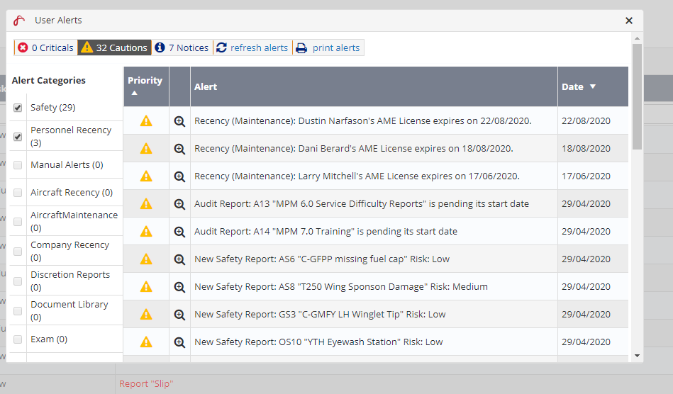 On a QA Manager screen The Critical, Caution and Notice alerts it would be nice to be able to have more choices such as Audits coming due / over due and Audit findings