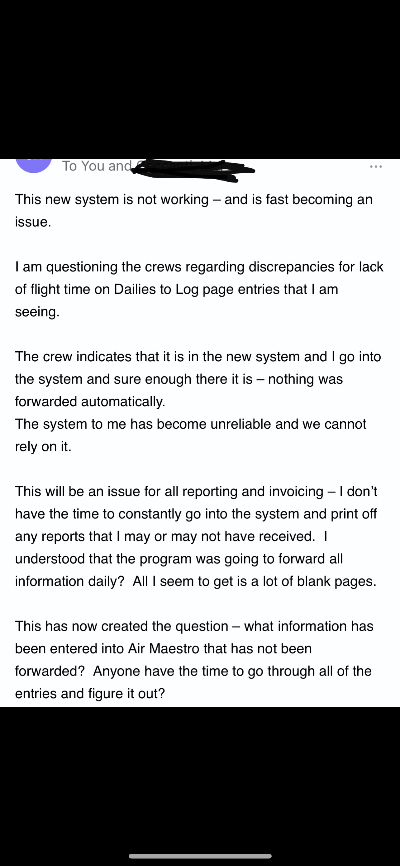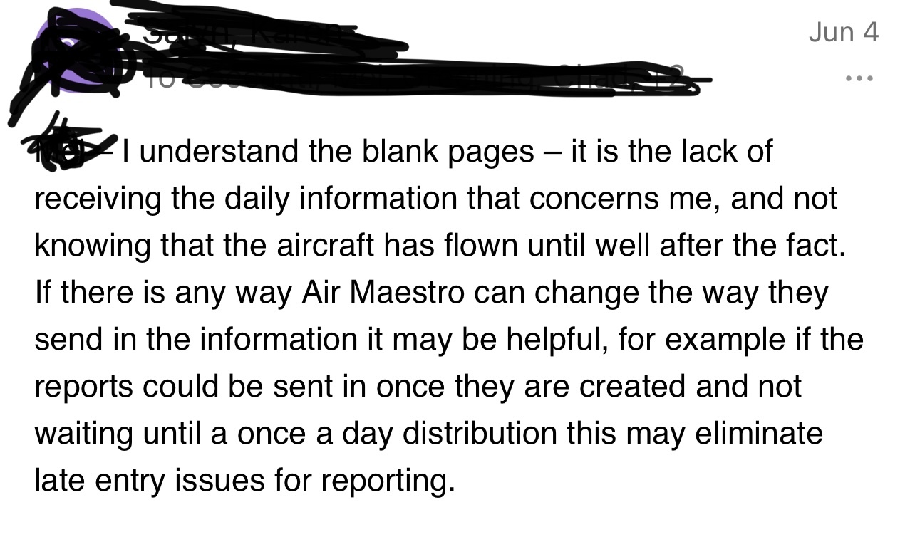 Email regarding the issues from an Admin Staff. (Note: We also call out flight reports Dailies.)