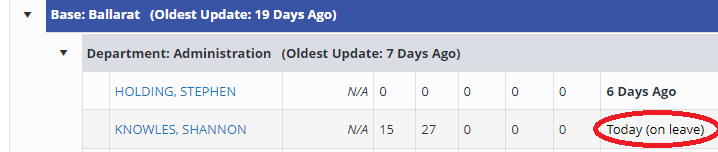 Currently the 'On Leave' status text stays visible for up to 3 days after the leave was selected in the roster, regardless of what is entered after that.