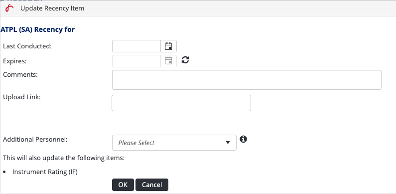• I would then go to My Recency/Company Recency/ Aircraft Recency page and update a recency item.